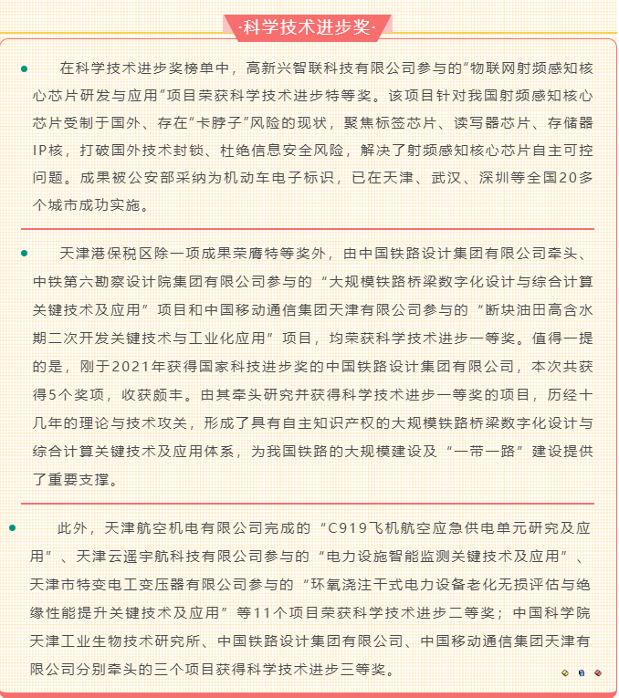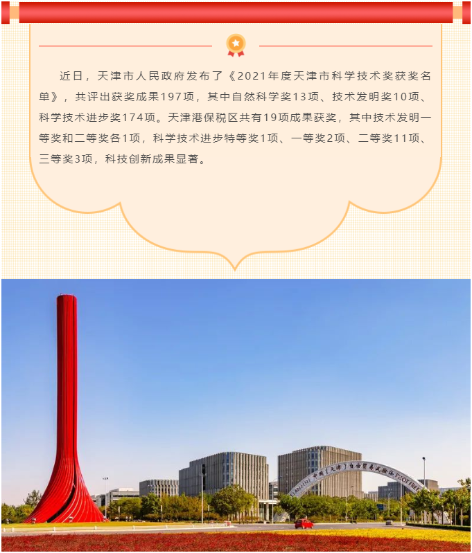 根据《天津市科学技术奖励办法》、《天津市科学技术奖励办法实施细则》、《天津市深化科技奖励制度改革方案》有关规定,经天津市科学技术奖评审委员会评议、市科技局审核,市人民政府批准发布了《2021年度天津市科学技术奖获奖名单》,共评出自然科学奖13项、技术发明奖10项、科学技术进步奖174项等共197项成果。