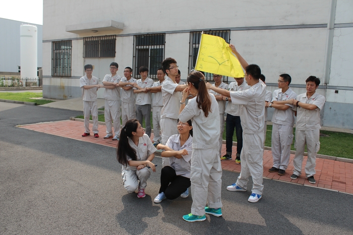 团队的组建、风采的展示、霸气的口号,嘹亮的队歌,展现出学员的热情和斗志,充分展示了新员工朝气蓬勃的活力。本次拓展训练项目针对挑战自我、信任、责任、协作、组织等方面开展训练,共包含五个内容,即群龙取水、挑战NO.1、驿站传书、极速60秒以及动力圈。