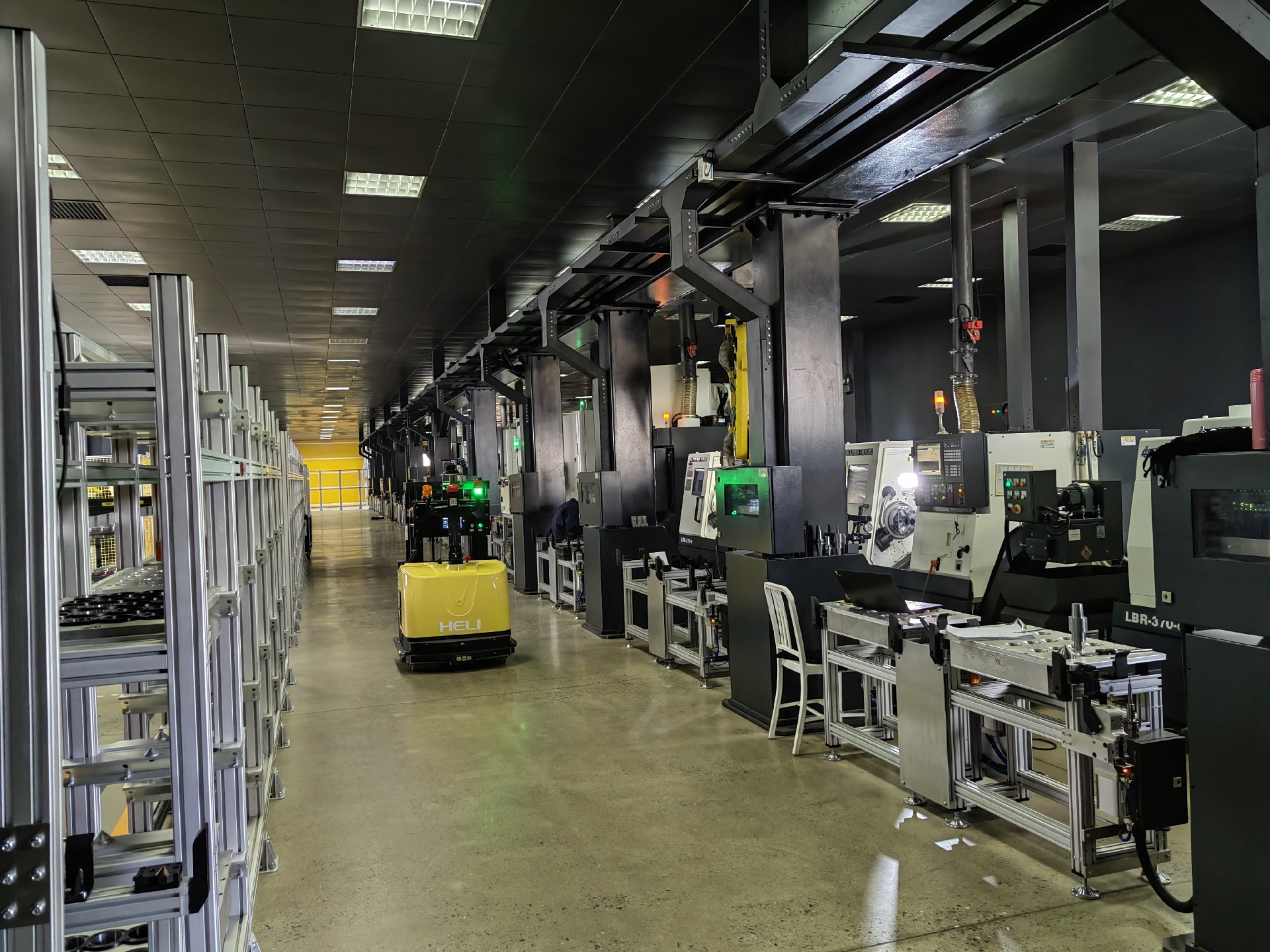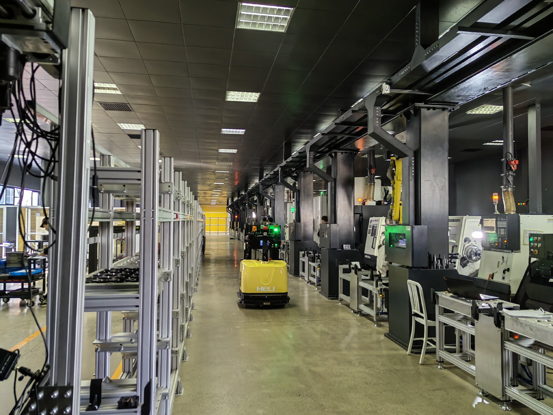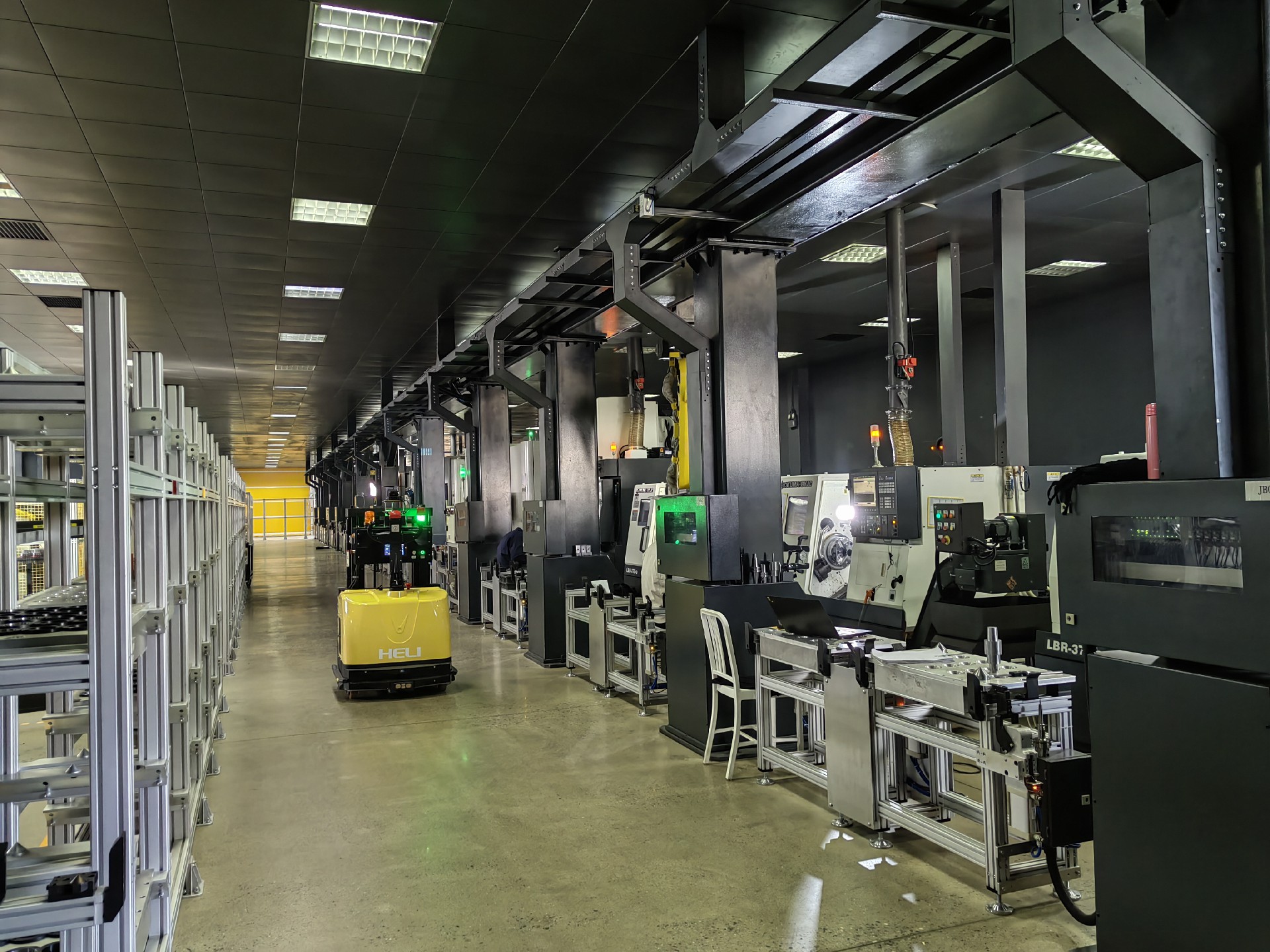智能车间改造,综合使用机械臂及AGV,根据生产订单自动调度车床铣床机械臂AGV等设备,自动换件、加工、刀具、卡爪更换,使整车间达到无人化自动运转。