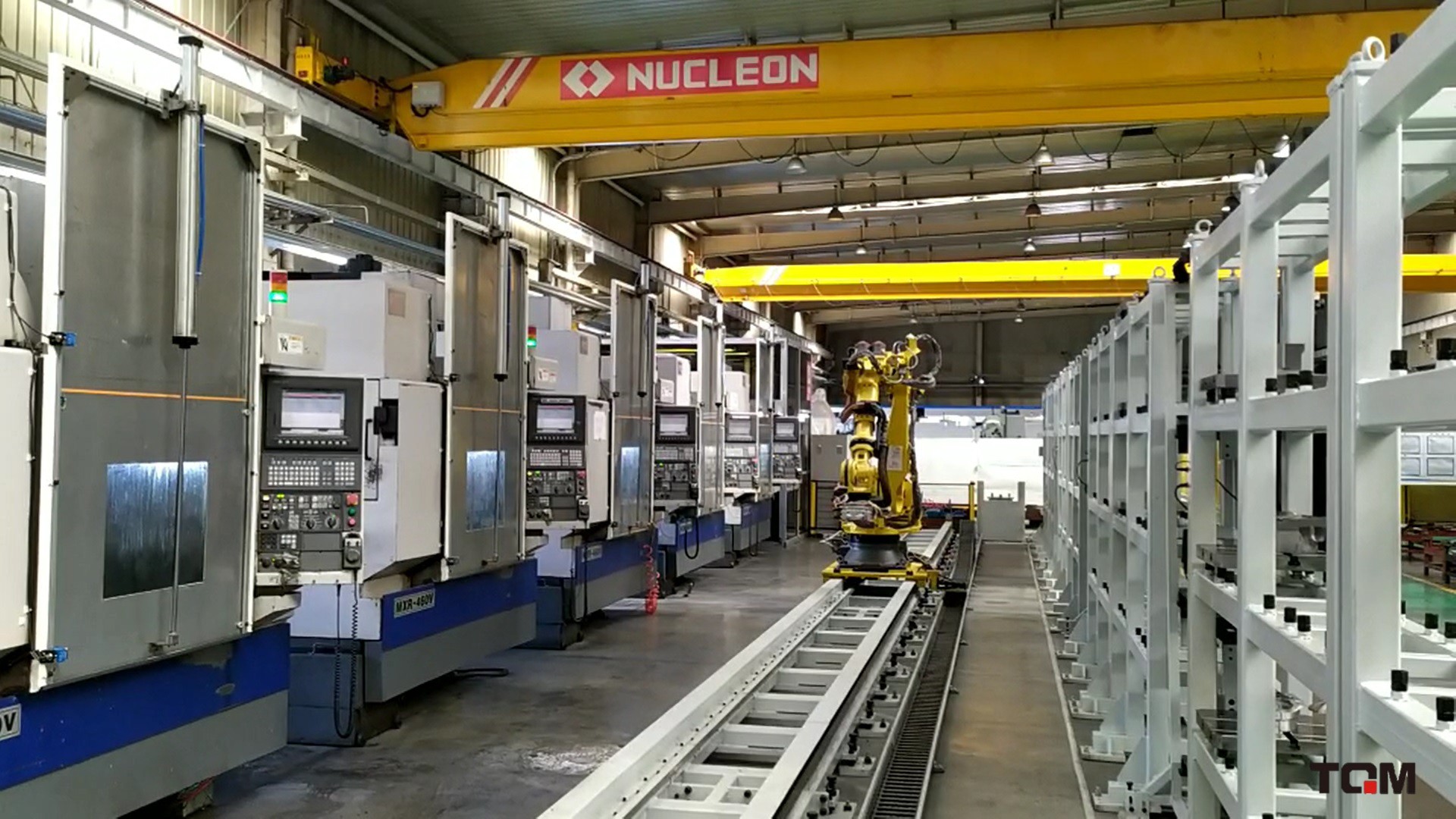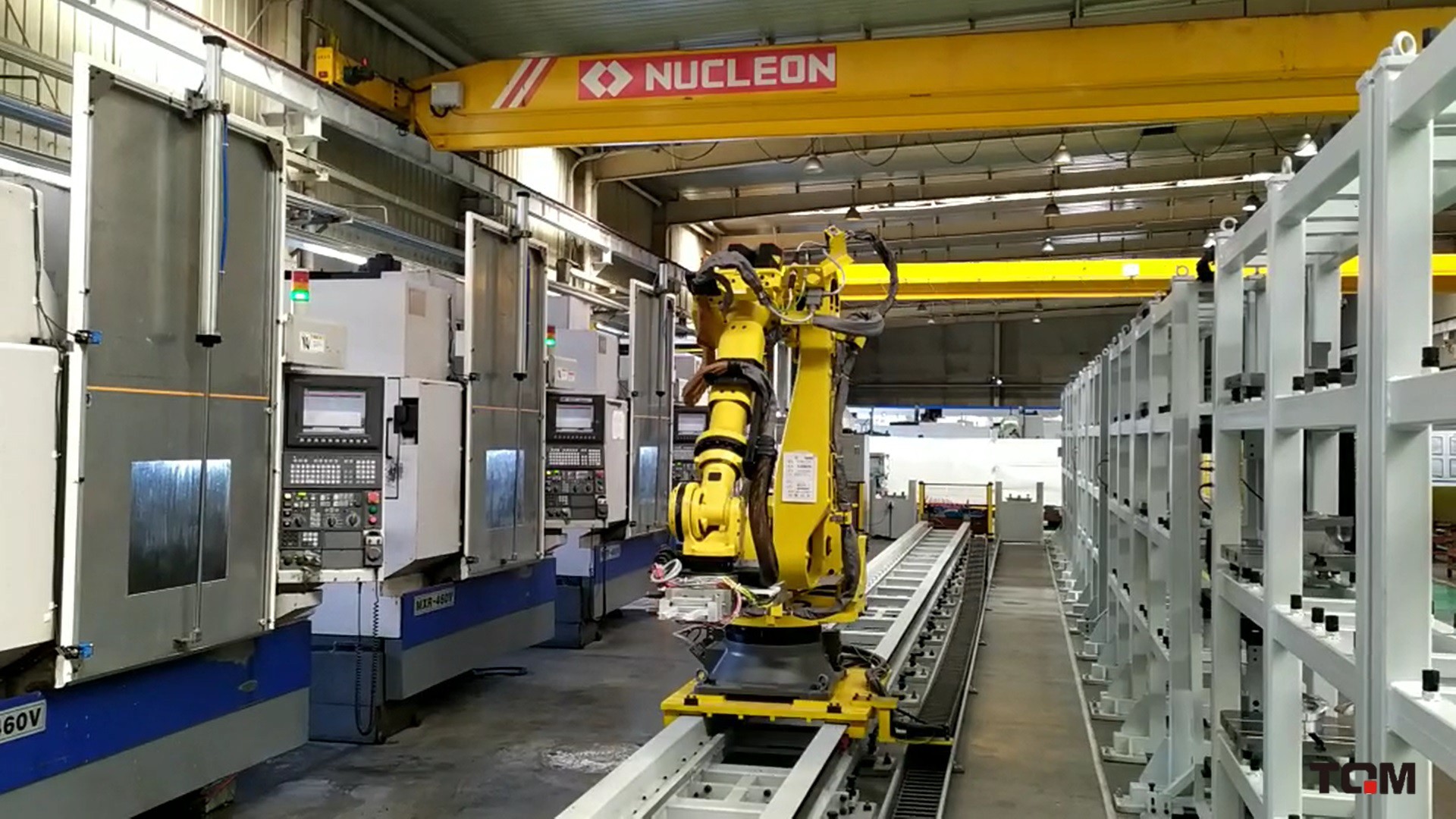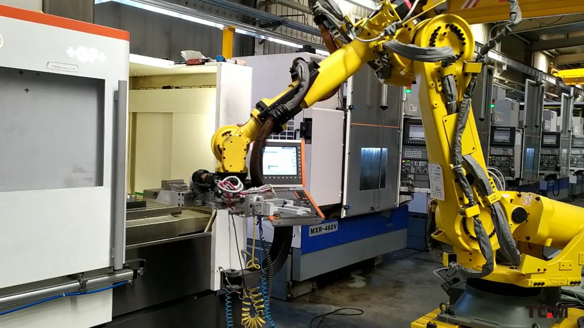 智能生产线,利用车间内匹配的设备进行智能化升级改造,加入机械臂的应用,使线体内机床自动运转及调度,达到非标件柔性自动调度生产的效果。